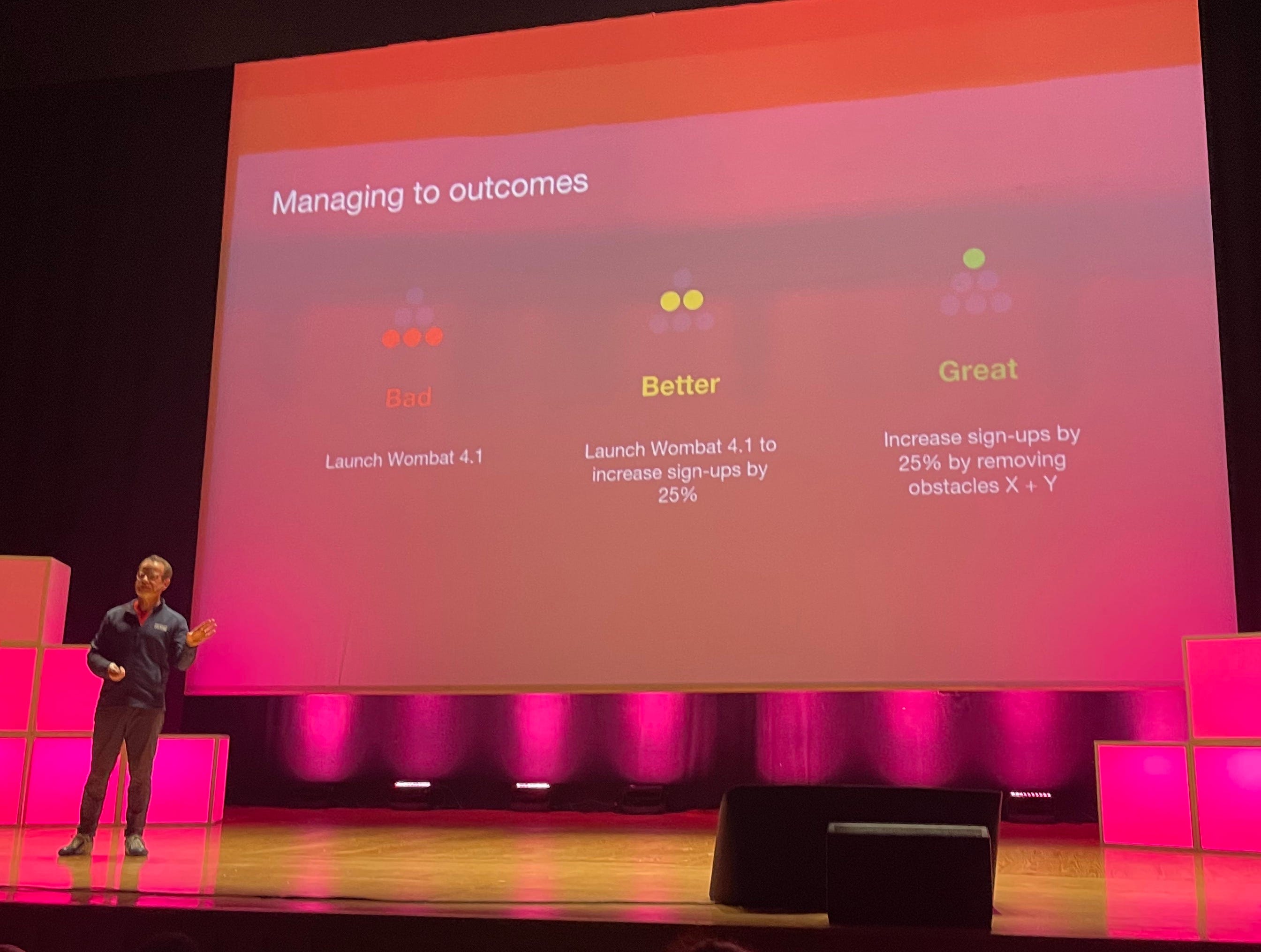 Siguió hablando de cómo ser product manager, no es lo mismo que ser problem-solver. Es decir, los productos son los que resuelven problemas reales de los usuarios, y nuestro trabajo es que ese producto resuelva su problema de la mejor forma posible. Debemos velar por la mejor implementación del producto y evitar añadir tiritas sobre los problemas que tienen nuestro producto a lo largo de su desarrollo y atacar los fallos de funcionalidad de raíz. Para esto es clave diferenciar entre los problemas externos al producto (que estamos intentando resolver) y los problemas que tiene el producto a nivel operativo y de usabilidad.